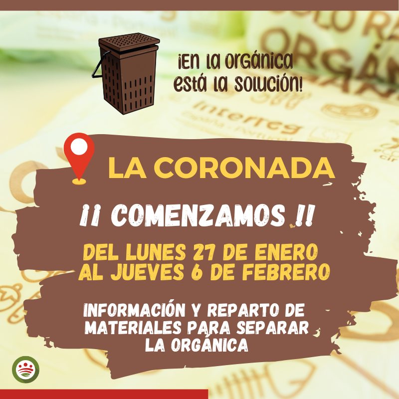 El próximo lunes, 27 de enero, se inicia la campaña informativa en La Coronada. Hasta el 6 de febrero, personal de información de Promedio estará en nuestro municipio llamando a las puertas de las casas para repartir los materiales y así facilitar la separación de la basura orgánica en los hogares. Se repartirá un cubo, un lote de bolsas compostables, una llave para abrir los contenedores y un imán para la nevera.