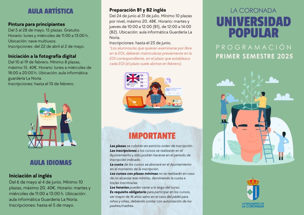 Esta es la programación que el Ayuntamiento a través de la Universidad Popular propone para los próximos seis meses.