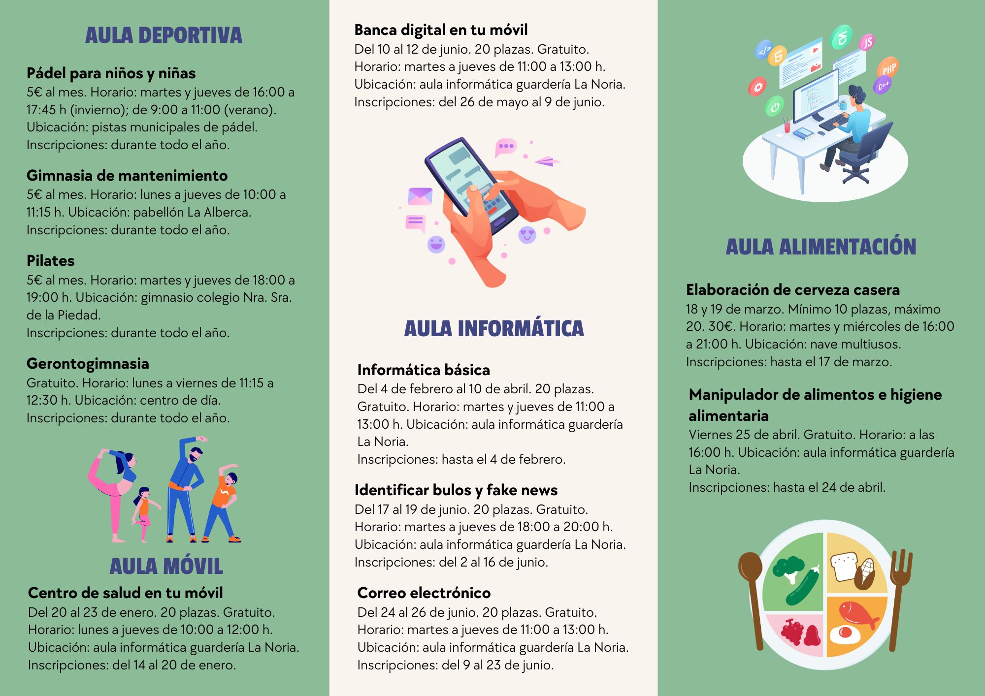 Esta es la programación que el Ayuntamiento a través de la Universidad Popular propone para los próximos seis meses.